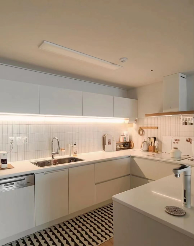 就拿廚房來舉例說,在操作臺面上裝上燈帶,切菜的時候就不會因為光線昏暗切到手了。光源充足還方便。