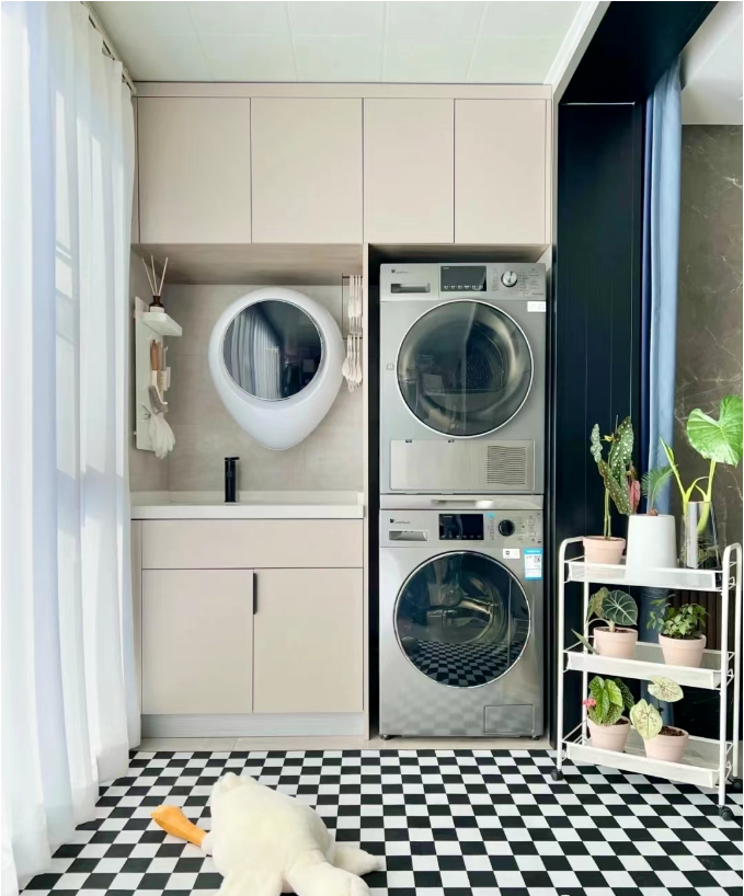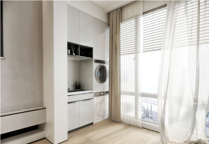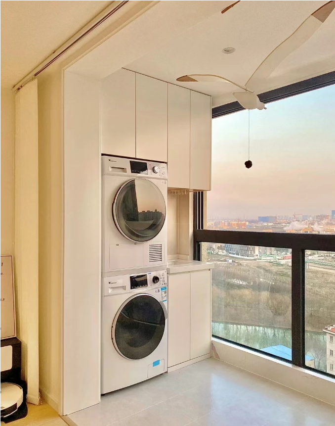 相信大家之前看過不少陽臺改造成書房、休閑區(qū)的文章,結(jié)果有很多朋友反饋還是做成洗衣房最合適,將陽臺劃分出洗衣區(qū)、晾衣區(qū)就能一步到位擁有“一體化”的洗衣房。而且還可以利用陽臺柜的收納做成儲物區(qū),存放一些清潔用品或不常用的生活雜物,非常實用~