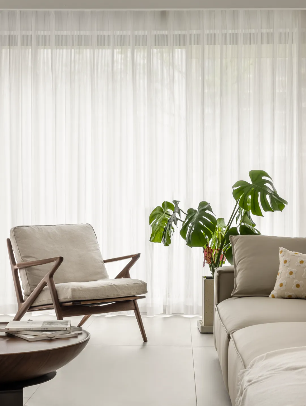 同時可以在客廳的轉(zhuǎn)角空間,擺放一些大型綠植,點綴空間的同時能讓家充滿生機活力。