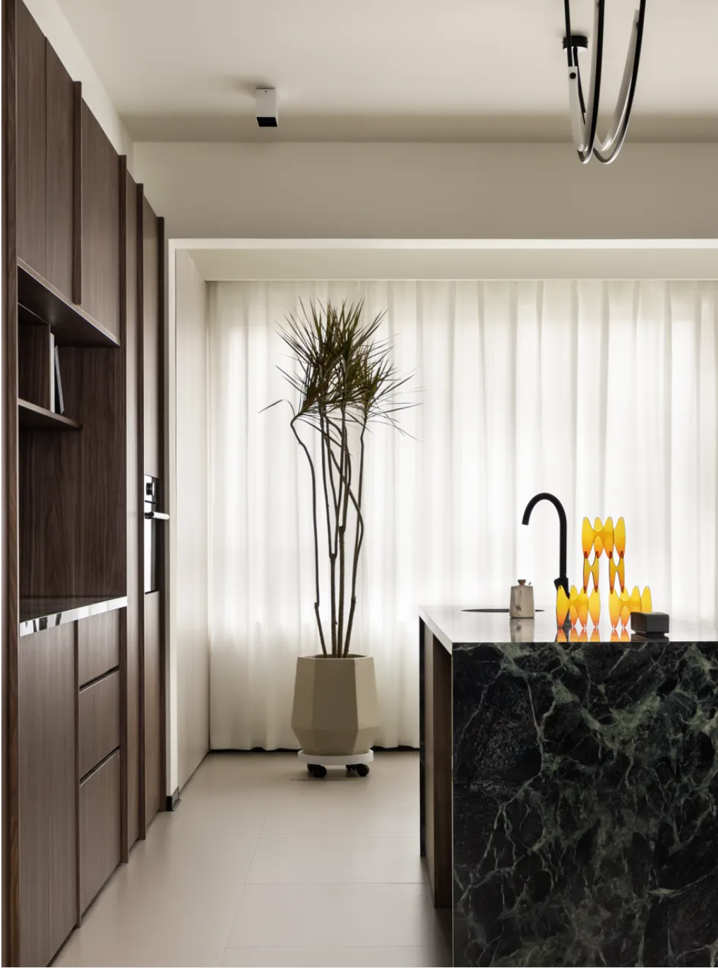 或者也可以搭配清爽干凈的綠植,進行廚房點綴。
